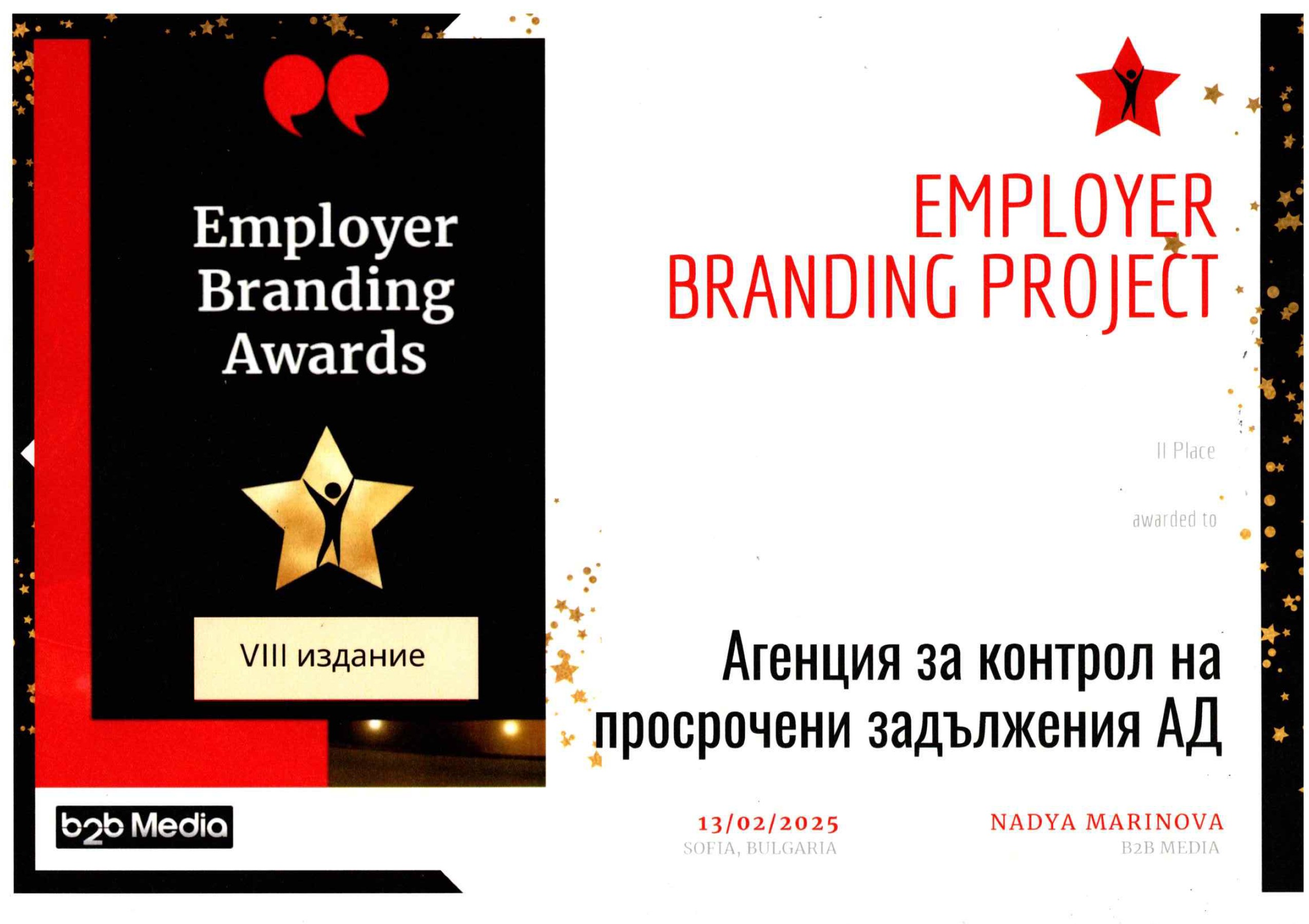 Съвместната ни работи започна в началото на тази година, от когато дружеството е наш основен партньор в сферата на изкупуването на просрочени вземания по различни парични заеми. Съвместната ни дейност към настоящия момент показва, че „Агенция за контрол на просрочени задължения“ АД се базира на експертен опит, с цел да предостави най-доброто на контрагентите си, като работи по най-високите стандарти за индустрията и представлява клиентите си стриктно спазвайки рамките на закона.