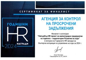 Компанията разполага с висококвалифициран екип, който е изключително гъвкав и опитен с оглед спецификата по управление и събиране на просрочени вземания по отпуснатите кредити. Компанията доказва, че е надежден и лоялен бизнес партньор, който изпълнява коректно, отговорно и в срок поетите ангажименти и чиито екип се справя качествено и професионално с поставените му задачи.